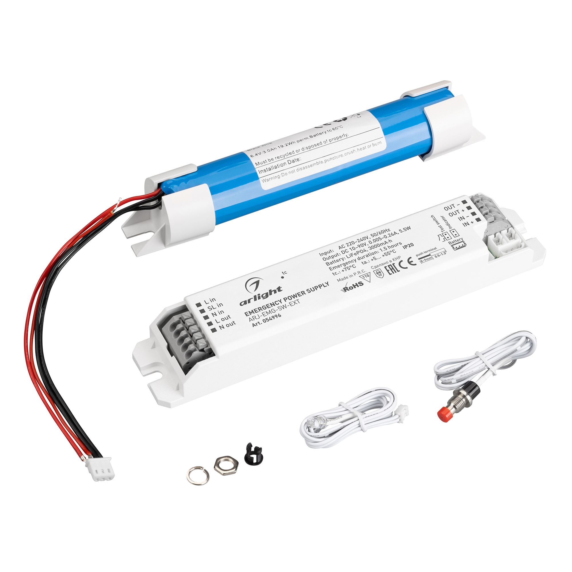 Блок аварийного питания ARJ-EMG-5W-EXT (10-90V, 1.5H, LiFePO4) (Arlight, IP20 Пластик, 3 года) 054996 в Воронеже