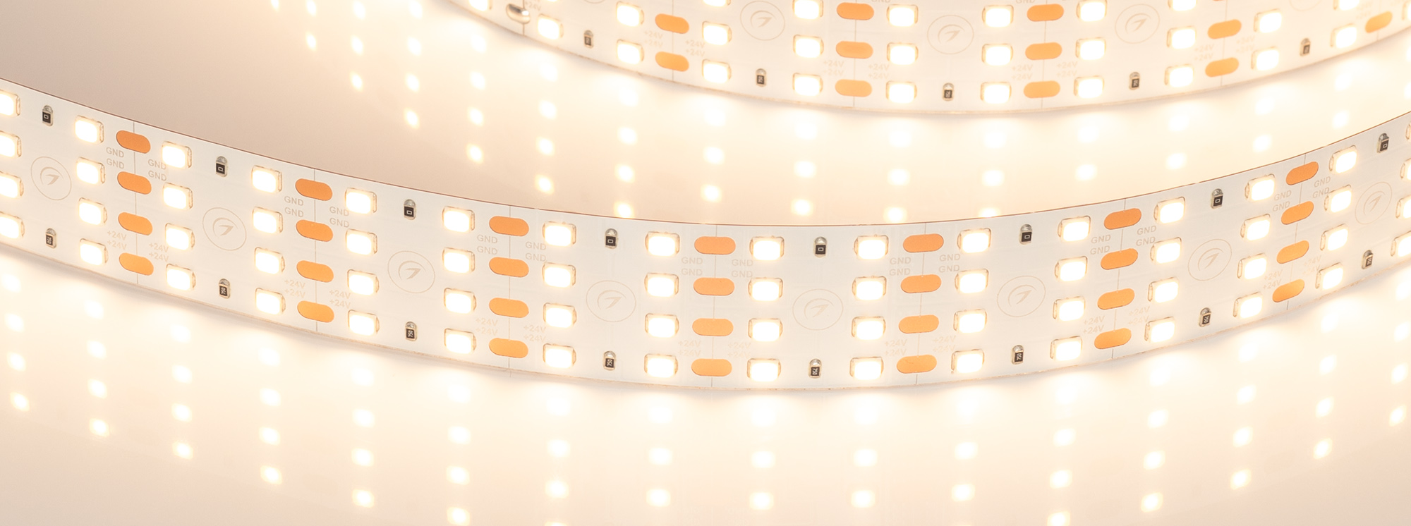 Широкая светодиодная лента UL серии A320, мощностью 35 Вт, шириной 24 мм, с расширенной гарантией 7 лет. Светодиоды SMD 2835, 320 шт/м, теплого белого цвета свечения (2700K). Высокий индекс цветопередачи CRI>90 обеспечивает точное восприятие цветов при освещении интерьеров жилых и коммерческих помещений. Световая эффективность 140 лм/Вт. Лента предназначена для создания светильников на основе алюминиевого профиля. Применяется для качественного, основного освещения. Подключение 3 м с двух сторон.