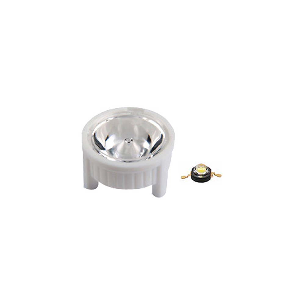 Одиночная линза со съемным холдером белого цвета для мощного светодиода Emitter. Угол обзора: вертикальный 10°, прозрачная линза. Материал PMMA. Диаметр 23 мм, высота 14.1 мм.