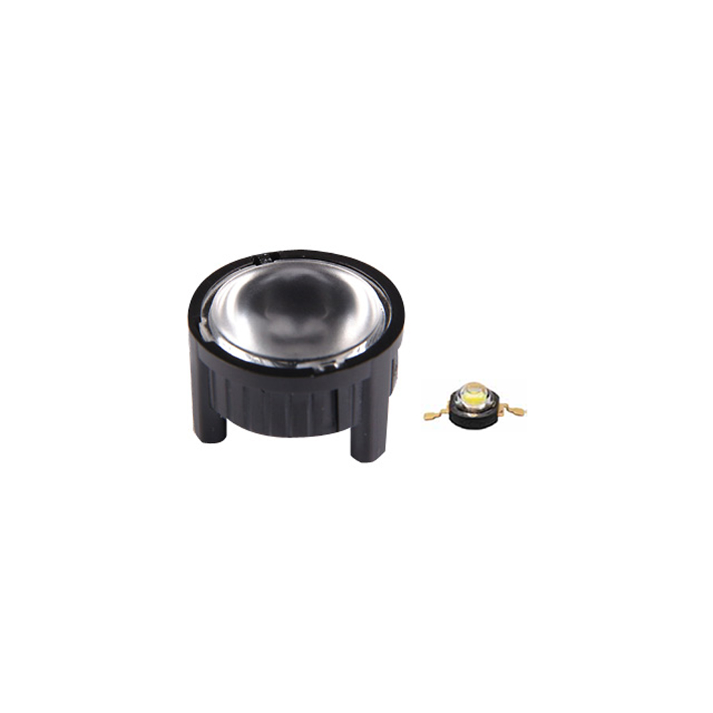 Одиночная линза со съемным холдером черного цвета для мощного светодиода Emitter.Угол обзора: вертикальный 45°, прозрачная линза. Материал PMMA. Диаметр 23 мм, высота 14.1 мм.