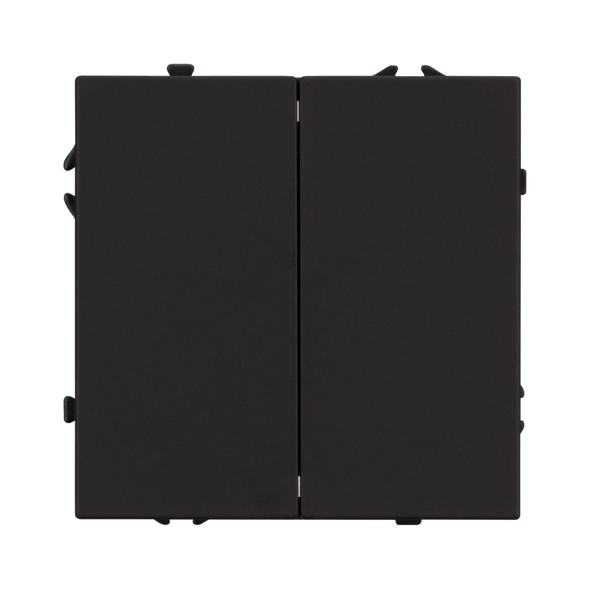 Механизм выключателя света клавишный на 1 пост 2 клавиши (проходной). Цвет - черный, с Soft-Touch покрытием. Без фронтальной рамки. Уровень пылевлагозащиты IP20. Выключатель устанавливается в стандартный круглый подрозетник круглого сечения диаметром 60мм.