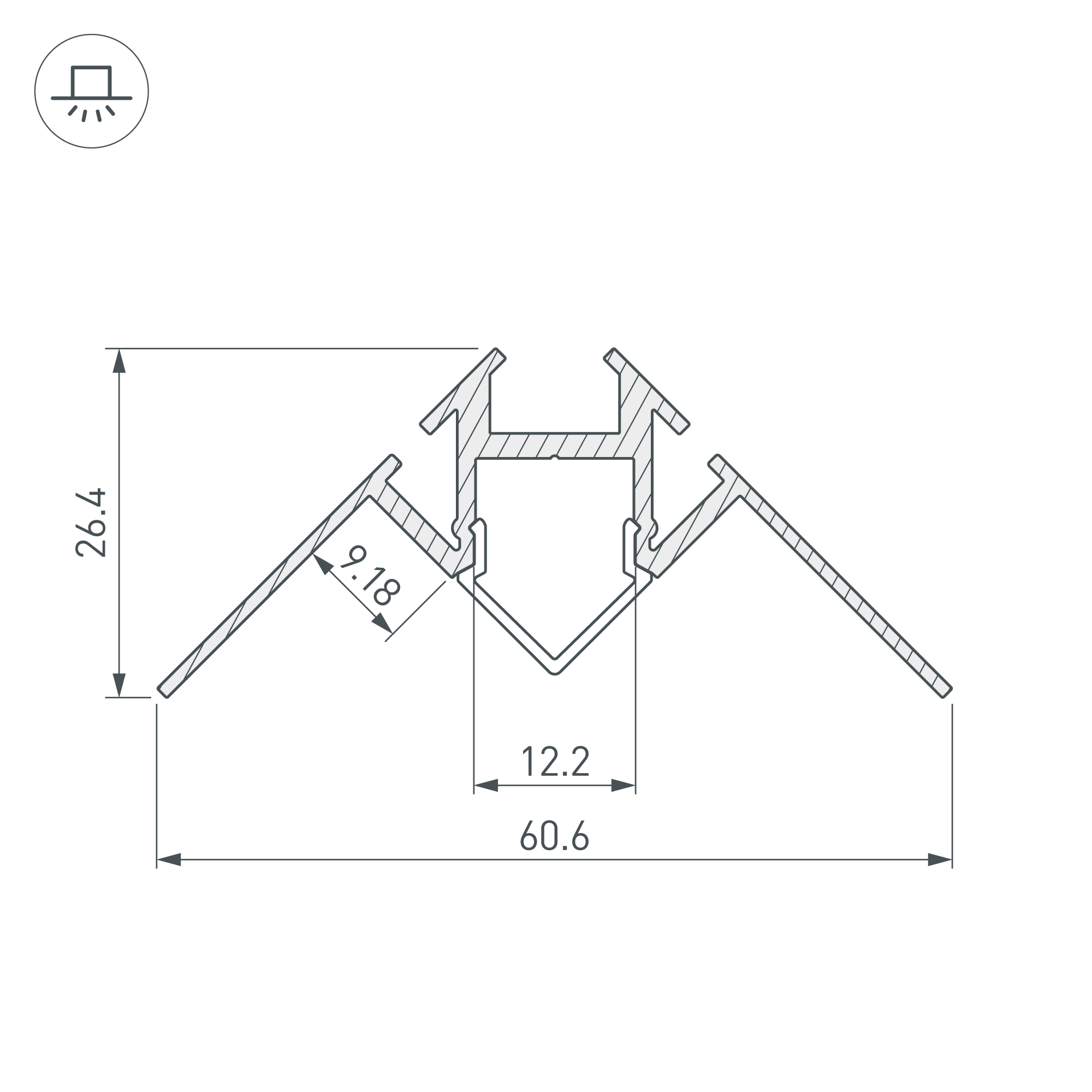 Встраиваемый угловой алюминиевый анодированный профиль для светодиодных лент и линеек под строительную отделку или плитку для контурной подсветки внутренних углов. Габаритные размеры этого профиля составляют 2000 мм в длину, 60,6 мм в ширину и 26,4 мм в высоту. Площадка для установки светодиодных лент позволяет использовать ленту шириной до 12 мм и мощностью до 37 Вт/м. Это обеспечивает гибкость в выборе светодиодных лент и создает потрясающие световые решения. Экраны, заглушки и другие аксессуары не включены в комплект и приобретаются отдельно. Цена указана за 1 метр профиля. Отличное решение для создания современных световых проектов.