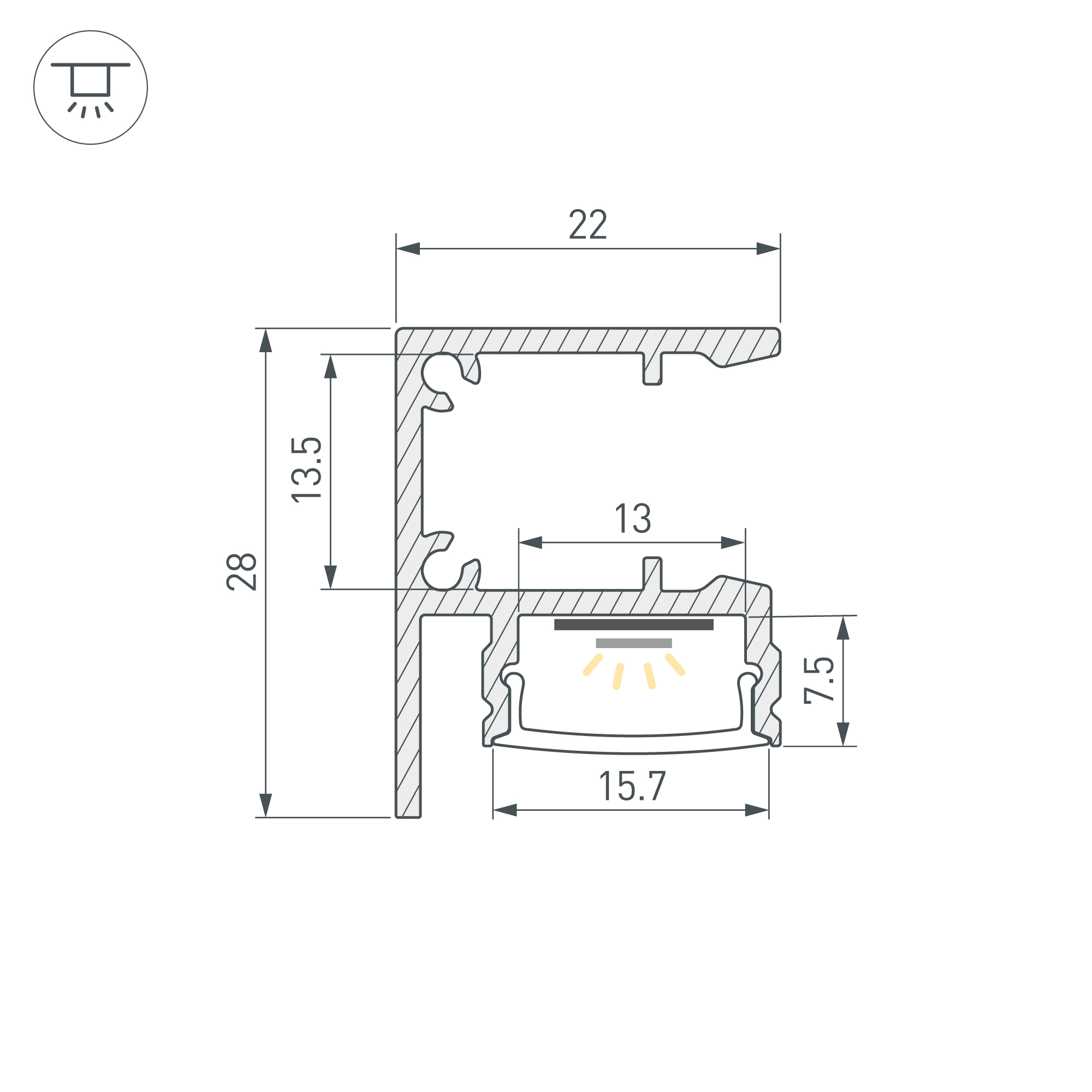 Настенный алюминиевый анодированный профиль для светодиодных лент и линеек с односторонним свечением для создания эффекта «отраженного света». Габаритные размеры (L×W×H): 2000x22x28мм. Ширина площадок для лент 13,4 мм. Экраны, заглушки и другие аксессуары приобретаются отдельно. Цена за 1 метр.