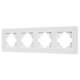 Рамка пластиковая на 4 поста, под встраиваемый механизм. Цвет - белый. Среднего уровня герметичности IP20. Ориентация монтажа - горизонтальная (основным ориентиром служат посадочные выступы для накладки механизма).