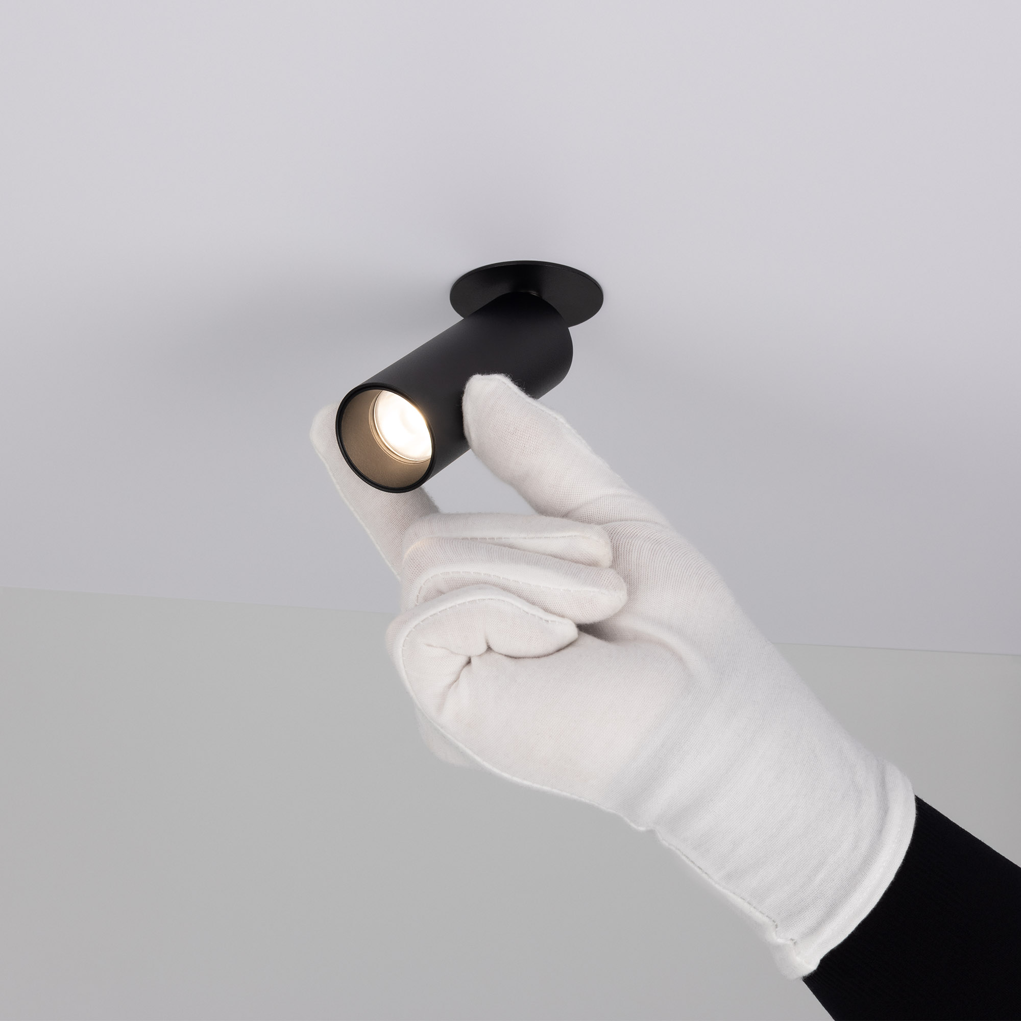 Светильник встраиваемый откидной. Мощность 7 Вт, св. поток 580 лм, 82 лм/Вт, дневной 4000 K, CRI>90, угол 36°, напряжение питания 230 В. Черный круглый корпус из алюминия, экран PMMA, степень защиты IP40. Размер: диаметр 35 мм, высота светового модуля 90 мм, высота основания 1.5 мм. Угол поворота 350°, угол наклона 90°. Монтаж встраиваемый, установочное отверстие: диаметр 45 мм, глубина 29 мм. Драйвер в комплекте 30-40 В, 150 мA, пульсация <1%.
