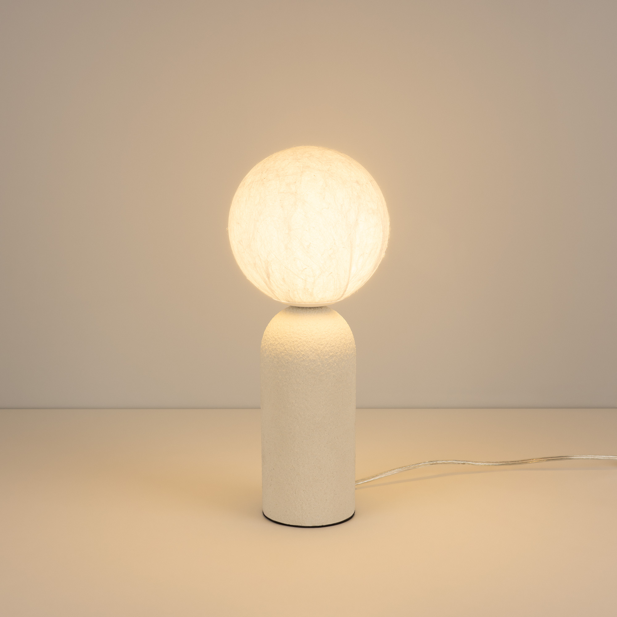 Настольный светильник SILKA. Диммирование посредством нажатия сенсорной кнопки на корпусе. Мощность 6 Вт, св. поток 403 лм, 67 лм/Вт, теплый 2700 K, CRI>97, угол 330°, напряжение питания 230 В. Белый корпус из алюминия, материал плафона: PMMA, материал покрытия плафона: натуральный шелк, степень защиты IP20. Диаметр плафона 150 мм, общая высота 360 мм. Габариты основания: Ø90 x 210 мм. Пульсация <1%.